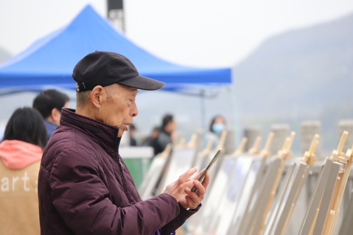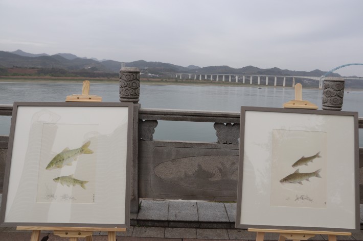 现场还举办了鱼类画作展,作者是来自三峡大学艺术学院的研究生王东云。他带来了自己创作的“百鱼图”系列画作的部分作品,吸引了大批市民参观。“人们一般对长江里有什么鱼不太了解,我希望通过我的作品让大家知道除了中华鲟、江豚,长江里还有很多珍稀物种,提高大家的生态环保意识。”他告诉记者。