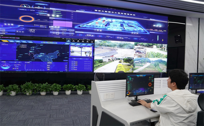 雅安大数据产业园监控指挥中心内,工作人员密切监视数据运行状态 (虞向军)