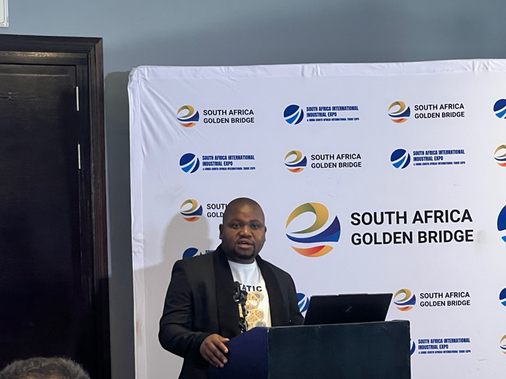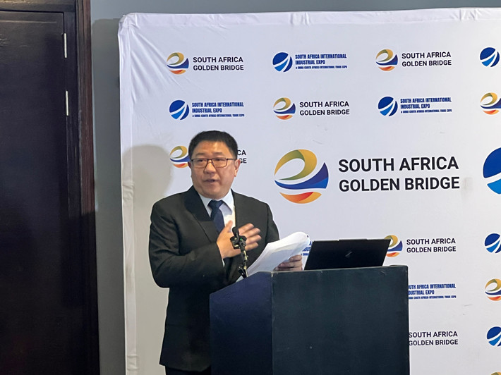 南非金桥国际展览公司总经理法文岩在新闻发布会上介绍展会相关情况