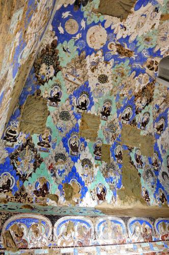 被称为音乐窟的克孜尔石窟第 38号石窟,壁画描绘了龟兹乐队演奏的场景。