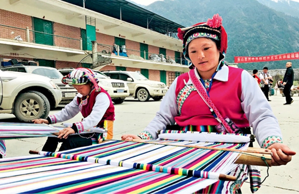 秋那桶妇女手工织的怒毯成为游客喜爱的旅游产品