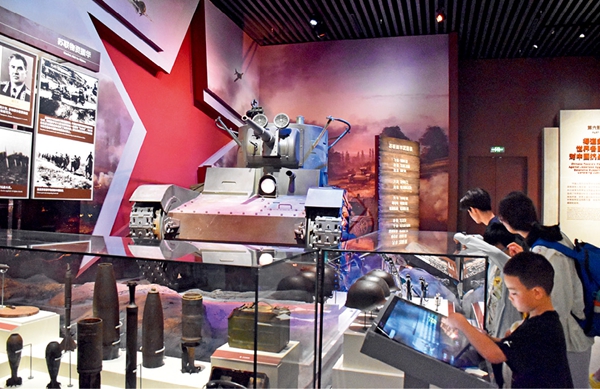 步入展馆内“地道战”的复原场景,仿佛拉开了通往烽火岁月的活页。房脊上,队伍弓身疾行;“芦苇荡”里,一叶扁舟贴水而过;钻入狭窄低矮的“地道”,大屏幕上地道战、水上游击战、地雷战的片段轮番映现,敌后根据地军民以巧制强的智慧与勇气跃然眼前。一旁的游客轻声哼起电影《地道战》的插曲:“地道战,嘿!地道战……”,尘封的记忆在此刻与历史的真实相互照映,令现场气氛更添沉浸与震撼。