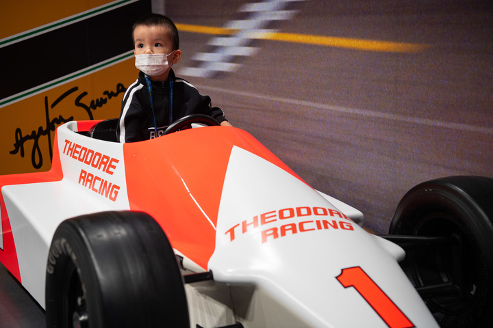 5月18日,一名小朋友在澳门大赛车博物馆游玩。新华社记者 张金加 摄