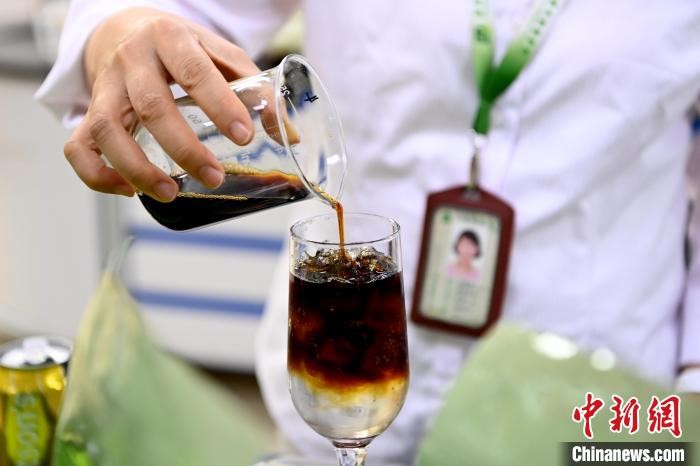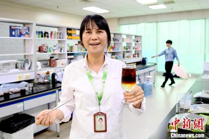 尤惠君向记者介绍刚研发的咖啡新品。 张金川 摄