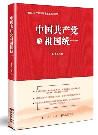 23.3万字、共6章、112幅彩色插图……由中共中央台湾工作办公室组织编写的《中国共产党与祖国统一》近日出版。通俗易懂的语言,图文并茂的编排,丰富翔实的史料,串联起中国共产党为解决台湾问题、实现祖国统一不懈奋斗的光辉历程。中央台办主任刘结一在引言中写道,该书充分彰显了中国共产党在各个时期为追求祖国统一发挥的核心引领作用、全心全意为两岸同胞谋福祉的真挚情怀,昭示祖国必须统一也必然统一的历史规律和光明前景。