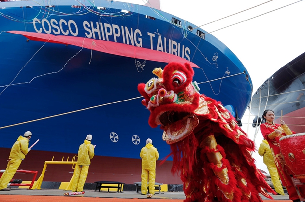 2018年1月27日,中国建造并交付最大集装箱船,载箱量达20119TEU“中远海运金牛座”轮在上海外高桥造船有限公司成功命名交付