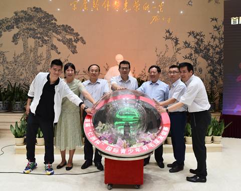 嘉宾共同上台开启首届“仁洲杯”国际青少年羽毛球友谊赛倒计时。
