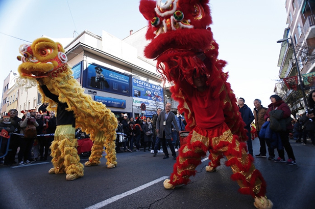 西班牙马德里,民众举行游行表演庆祝中国春节