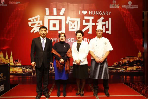北京民族饭店与匈牙利大使馆、匈牙利文化中心将于2018年11月19日-12月15日奉献第四届匈牙利美食节。匈牙利大使馆文化教育参赞宋妮雅、民族饭店总经理夏敏辉共同开启此次美妙的活动。