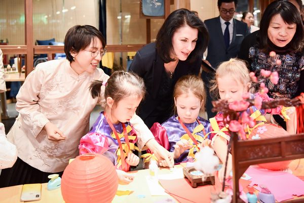 活动当天,俄罗斯亲子家庭还参加了中国文化体验活动,在粹空间女红馆体验了灯笼制作和编制中国结课程。“我是第一次做灯笼,非常有趣,听老师说灯笼还有团圆兴旺、富贵圆满的寓意。”弗拉德开心地展示着自己制作的灯笼。教室另一侧,俄罗斯小朋友们认真观摩编结老师手势的翻转变化,饶有兴趣地穿线、系结,体会着中国传统装饰工艺的情致与智慧。