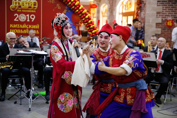 欢声,笑声,丝竹声,声声入耳;喜事,乐事,两岸事,事事顺遂。农历小年前夕,“丝路欢聚中国年”中俄跨境文化交流活动在与中国黑龙江省黑河市一江之隔的俄罗斯布拉戈维申斯克市举办。唱京剧,秀旗袍,舞狮子,抬花轿,以中国传统文化为主打内容的文化展演节目惊艳登场,向俄罗斯民众展现了传统文化与现代活力交相辉映的中国年。