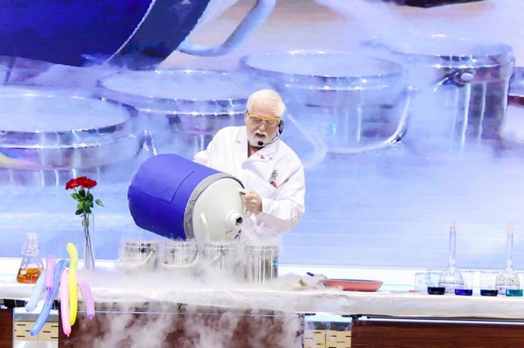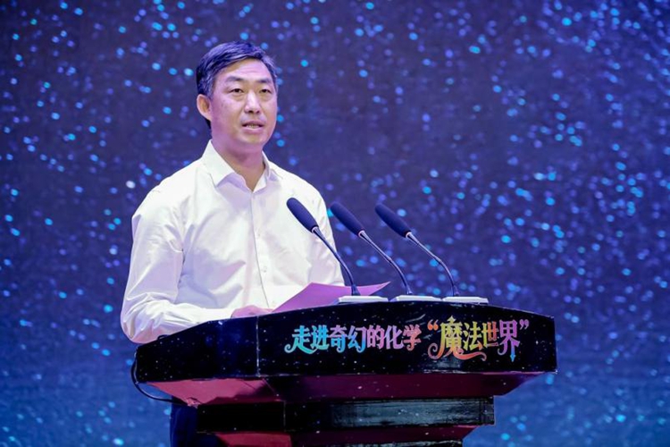 在随后的“化学魔法”课堂上,中国工合国际委员会副主席、北京化工大学科普实验中心主任、中国政府“友谊奖”获得者、英国籍化学专家戴伟教授针对高中生和小学、初中年龄段学生的不同特点,分别以“什么是化学反应”“化学无处不在”为题,为同学们带来了生动、奇妙的化学课程。