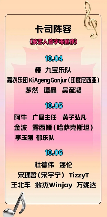 20组海内外艺人将分日登台,构建跨风格、跨地域的音乐矩阵: