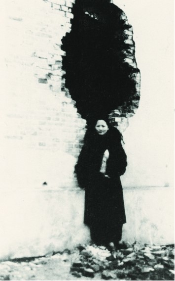 1932年2月,宋庆龄在真茹前线残垣断壁前,手持未爆炸的敌弹留影,表示抗战到底的决心