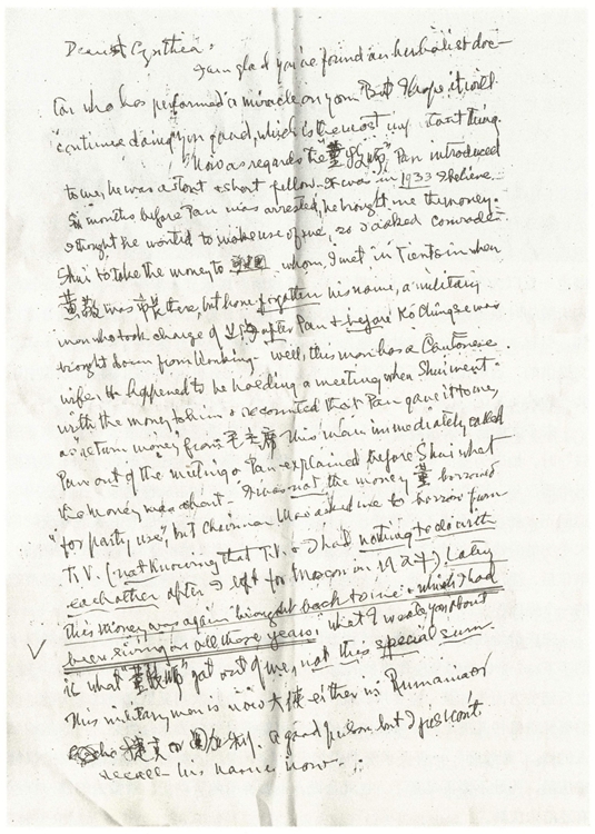 1936年,毛泽东致函宋庆龄,请其向宋子文借款。这是宋庆龄1969年3月17日致廖梦醒的信,提及了这笔借款的由来