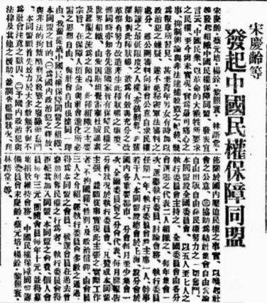 1932年12月18日,《申报》刊登中国民权保障同盟的成立宣言