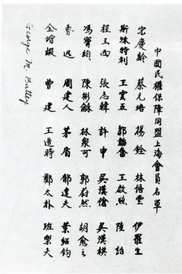 1932年12月18日,中国民权保障同盟在《申报》发表宣言,向社会公布宗旨和目的,正式宣告成立。中国民权保障同盟以唤起民众努力于民权之保障为宗旨;以争取释放政治犯,给予政治犯法律援助,支援为争取结社、集会、言论、出版自由等民主权利而进行的斗争为目的。中国民权保障同盟选举宋庆龄、蔡元培、杨杏佛分别担任正副主席和总干事。