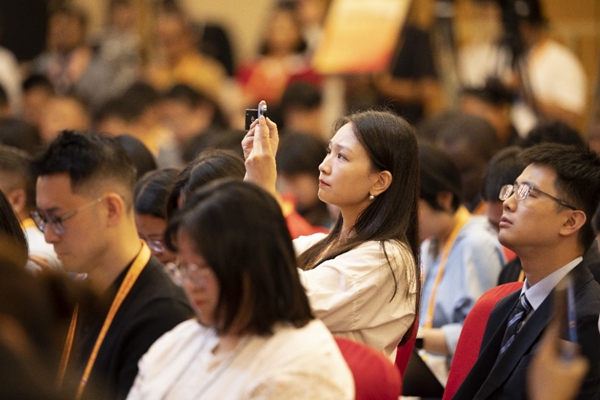 参加中国人民抗日战争暨世界反法西斯战争胜利80周年纪念活动记者招待会的中外记者举手提问