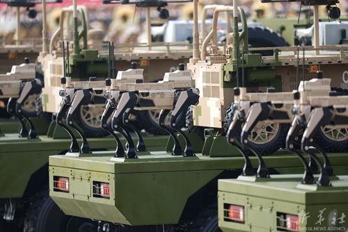 9月3日,纪念中国人民抗日战争暨世界反法西斯战争胜利80周年大会在北京隆重举行。这是陆上无人作战方队接受检阅