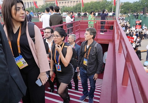 9月3日,纪念中国人民抗日战争暨世界反法西斯战争胜利80周年大会在北京隆重举行。这是外籍记者现场报道盛况