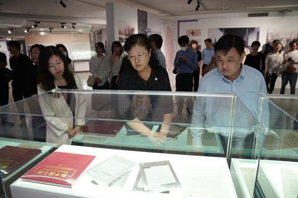 与会嘉宾共同参观“让历史说话 用史实发言”南京大屠杀史实展(张巍摄)