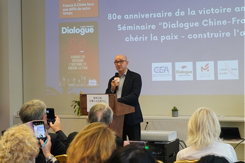 9月27日,纪念反法西斯战争胜利80周年——中法对话:珍爱和平研讨会在法国巴黎举办。中国外文局西欧与非洲传播中心(今日中国杂志社)主任赵丽君、中国驻法国大使馆公使衔参赞王健,法国旺代天主教学院政治学系主任、国际关系学教授马蒂厄·格朗皮龙、法国扎菲尔欧亚合作促进会会长、地缘政治学者让·佩古雷(贝文江),法国和平运动组织副主席伊夫-让·卡拉斯,法国国家科学研究中心研究员、经济学家雷米·赫雷拉,巴黎法中友好协会副主席利亚齐德·本哈米等来自中国和法国的50余位高校、智库、非政府组织和媒体的代表参加本次研讨会。