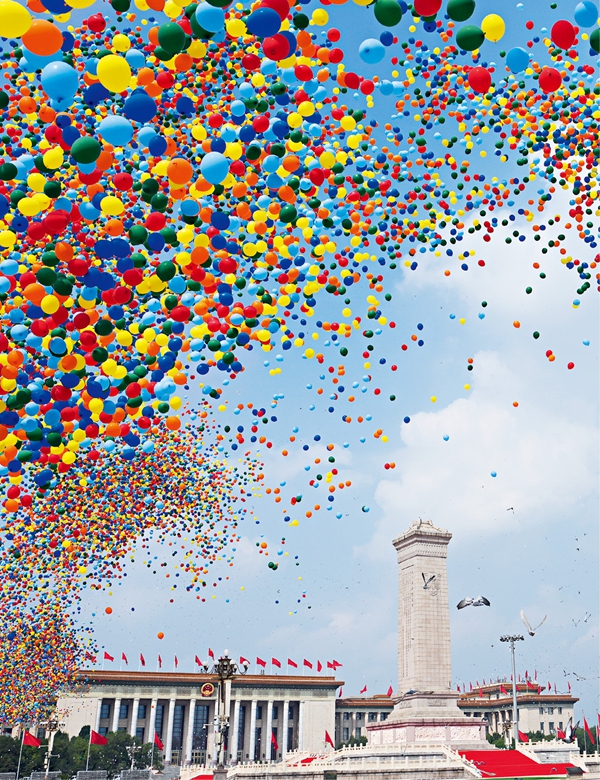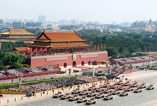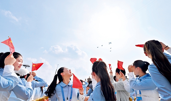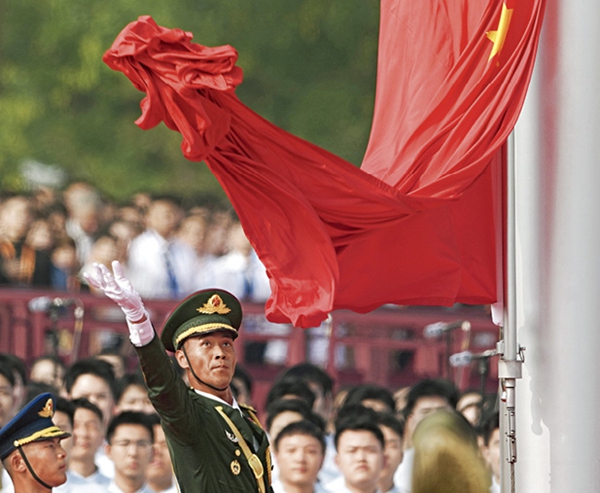 2025年9月3日,纪念中国人民抗日战争暨世界反法西斯战争胜利80周年大会在北京隆重举行。图为天安门广场举行隆重的升国旗仪式