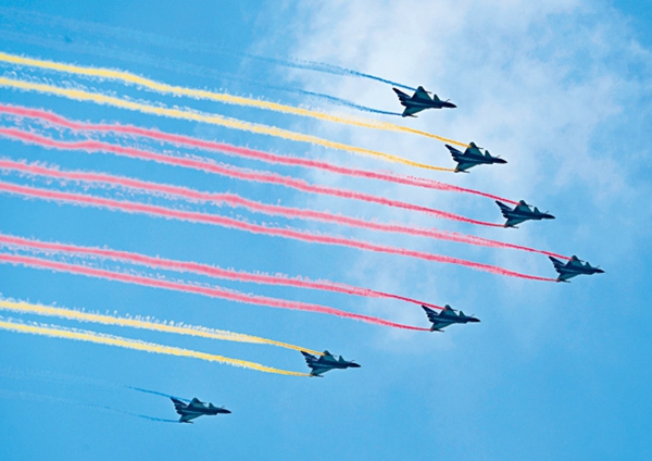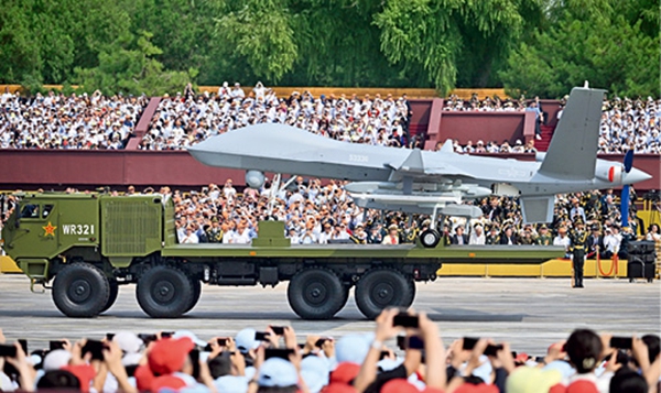 2025年9月3日,纪念中国人民抗日战争暨世界反法西斯战争胜利80周年大会在北京隆重举行。图为空中无人作战方队接受检阅